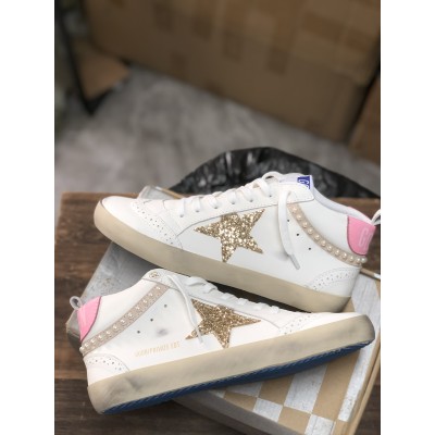 Women's Mid Star Sneaker with Gold glitter star and pink heel tab