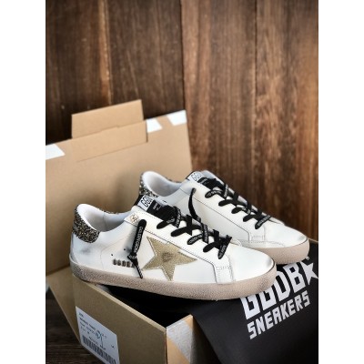 white leather Super-Star sneakers with glittery heel tab and gold star