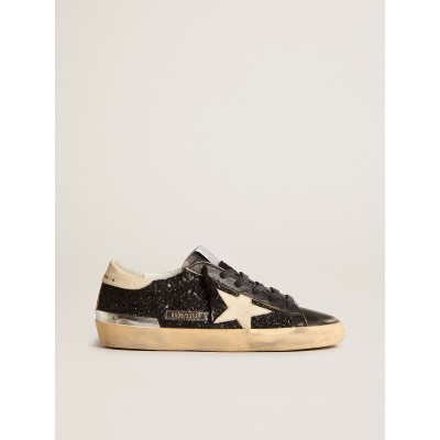 Super-Star in black glitter and nappa with cream leather star and heel tab