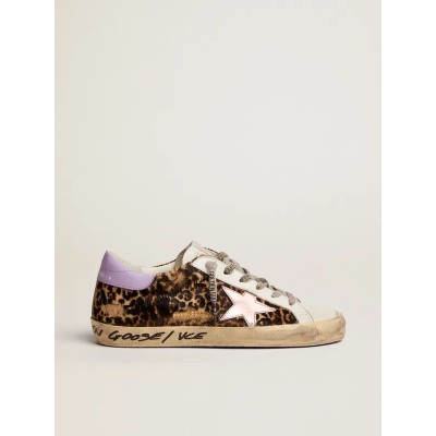 Super-Star LTD sneakers in leopard-print pony skin with salmon-colored laminated leather star and pu