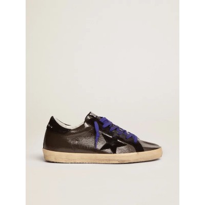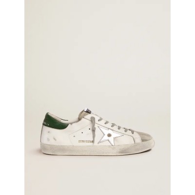 Super-Star sneakers with green leather heel tab and silver laminated leather star