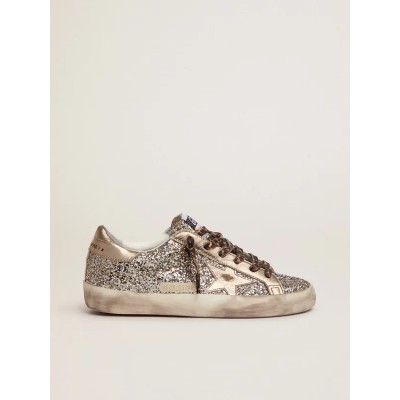 Super-Star sneakers in platinum-colored glitter with star and heel tab in tone-on-tone laminated lea