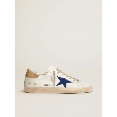 Super-Star sneakers with sand-colored suede heel tab and blue suede star