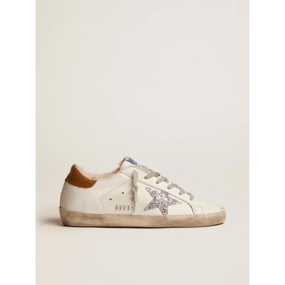 Super-Star sneakers with shearling lining, silver glitter star and lizard-print dove-gray leather he