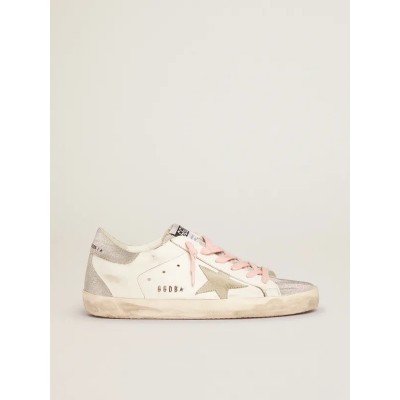 Women's Super-Star with gold glitter star and ice-gray suede inserts