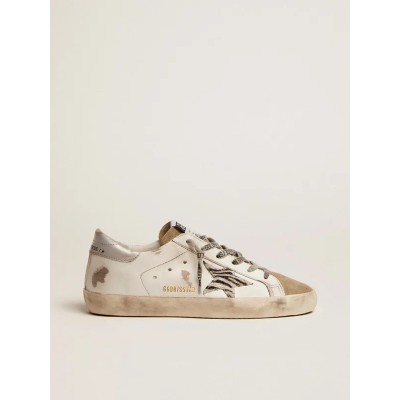 Super-Star sneakers with silver laminated leather heel tab and zebra-print pony skin star