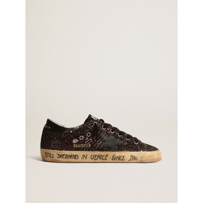Women's Super-Star with gold sparkle foxing and metal stud lettering