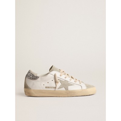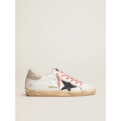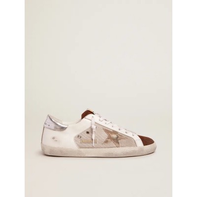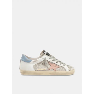 Super-Star LTD sneakers in white leather with mesh insert and silver glitter