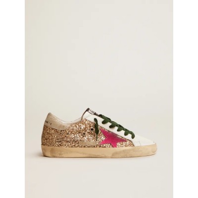 Super-Star sneakers in gold glitter with fluorescent pink suede star