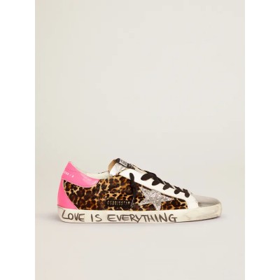 Super-Star sneakers in leopard-print pony skin with silver glitter star