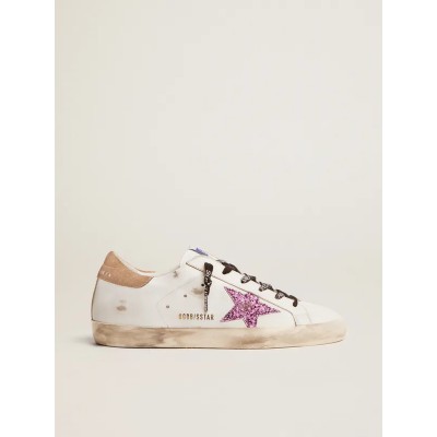 Super-Star sneakers in white leather with lavender-colored glitter star