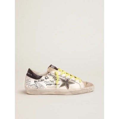 Super-Star sneakers with silver glitter tongue and handwritten lettering on the foxing