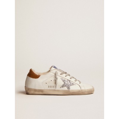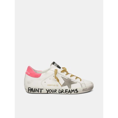 SUPERSTAR Sneakers in white leather with glitter star and Pink Purple heel tab