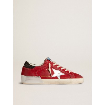 Women’s Super-Star LTD in red nubuck with leather star and glitter heel tab
