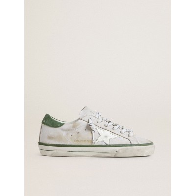 Women's Super-Star LTD with white leather star and green suede heel tab