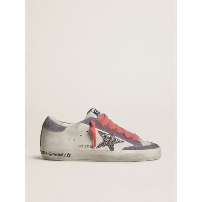 Women's Super-Star with silver glitter star and lilac suede heel tab