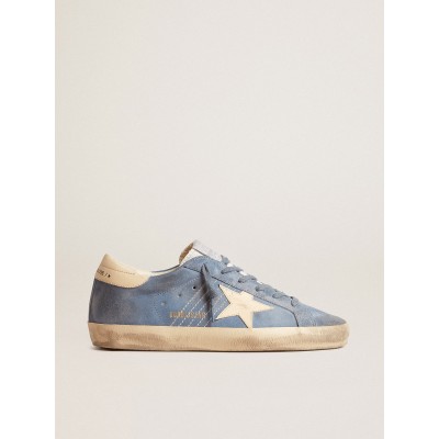 Super-Star in light blue suede with beige leather star and heel tab