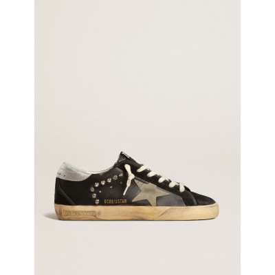 Women’s Super-Star in black leather and suede with silver studs