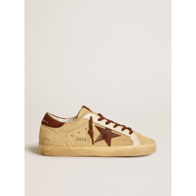 Women’s Super-Star in beige pony skin with brown suede star and heel tab