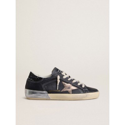Women's Super-Star LTD in black leather with gold leather star and black glitter heel tab