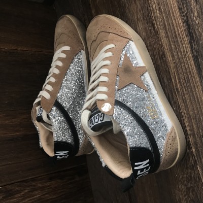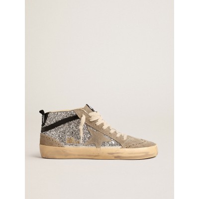 Mid Star Sneaker in silver glitter with brown suede star and black suede heel tab