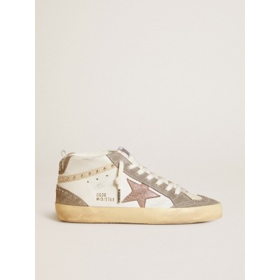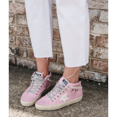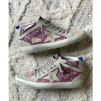 Women's Mid Star Sneaker in pink glitter with ice grey suede star