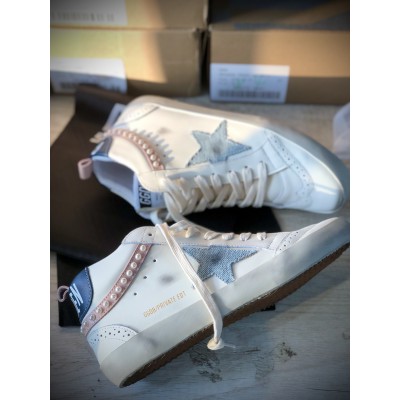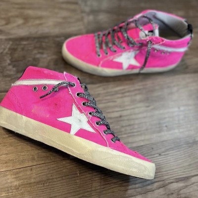 Women's Mid Star Sneaker with Gold glitter star and pink heel tab