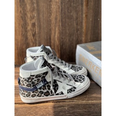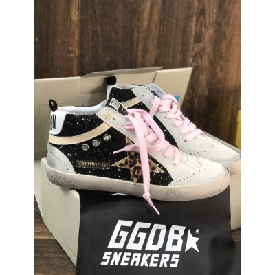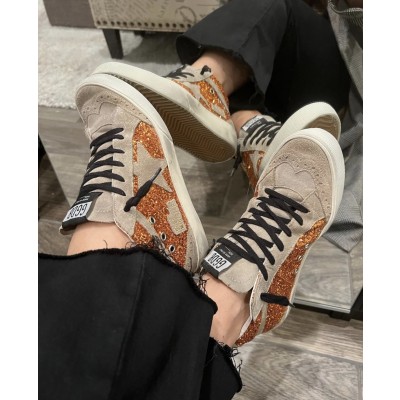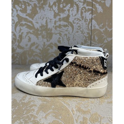 Mid Star Sneaker in gold glitter with black suede star and leopard print