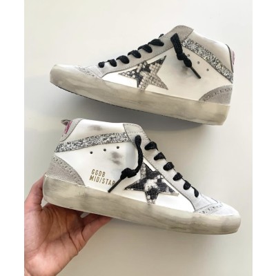 Mid Star Sneaker in glitter with ice suede star and white leather heel tab