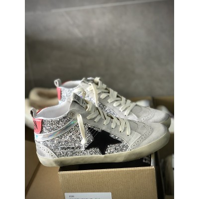 Mid Star Sneaker in glitter with pink star and leopard print lace