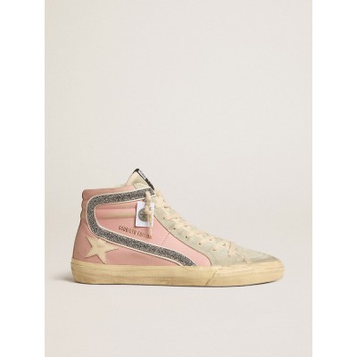 Women's Slide LTD in pink nappa leather with white star and Swarovski inserts