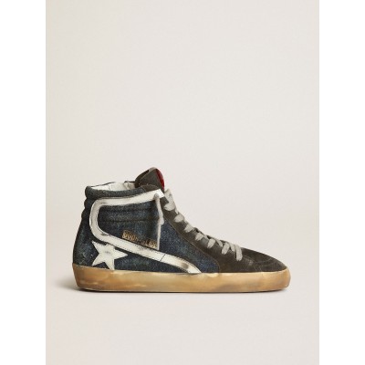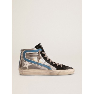 Slide in platinum glitter with leopard-print pony skin star and black flash