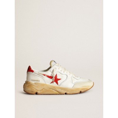 Men's Running Sole in gray nappa leather with red nappa leather star and heel tab