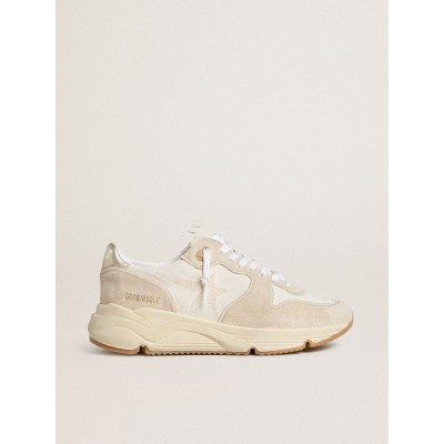 Men's Running Sole in ivory nylon and tobacco suede