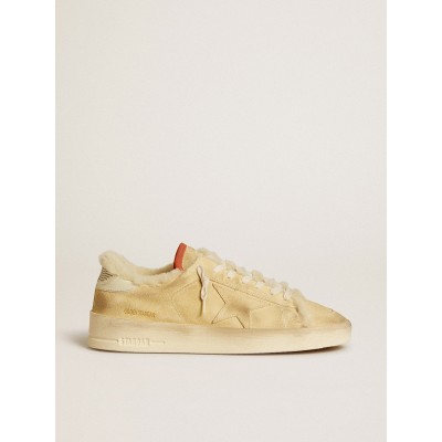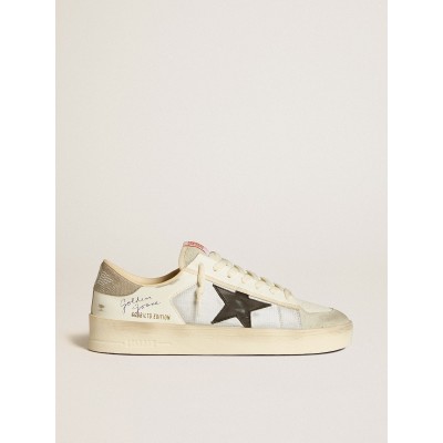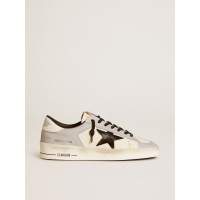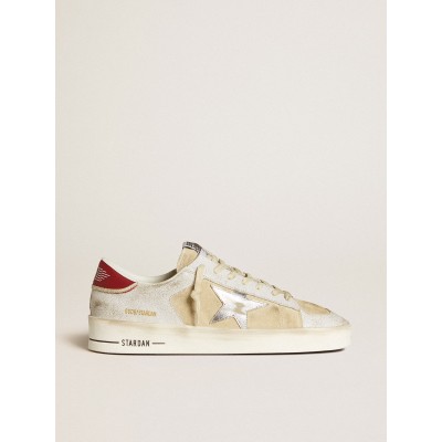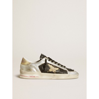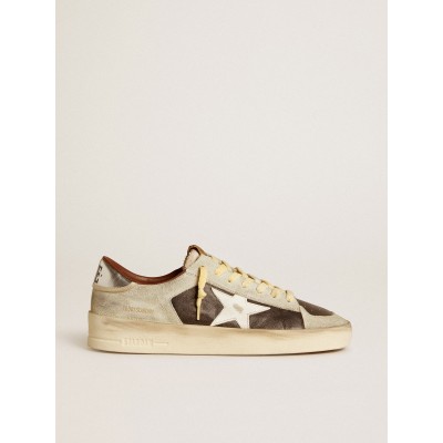 Stardan in nubuck and crackle leather with silver metallic leather star