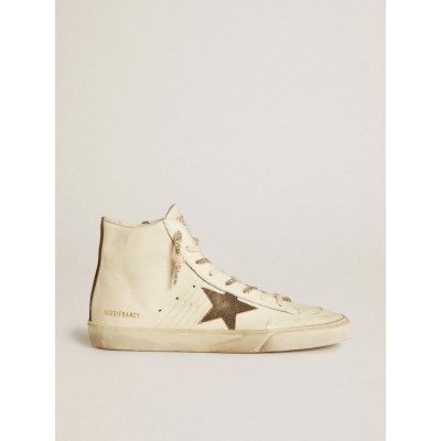 Women’s Francy in white suede with black leather star and silver Swarovski crystal tongue