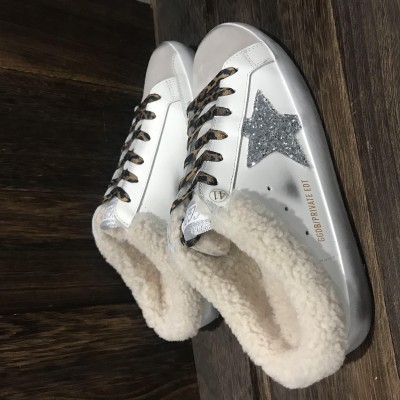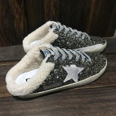 Women's Super-Star Sabot in mix glitter and shearling interior with ice grey suede star