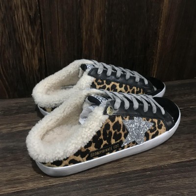 Women's Super-Star Sabot in Leopard print and shearling lining with glitter star