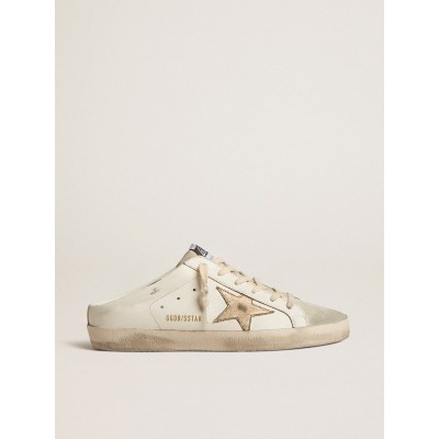 Women's Super-Star Sabots in gold nappa with Beige leather star