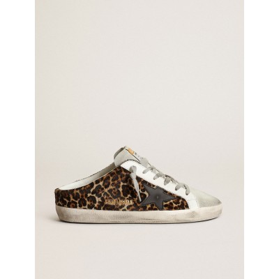 Women's Super-Star Sabot in leopard print pony skin with black star