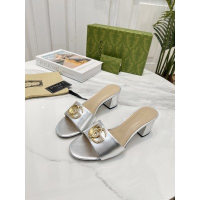 GUCCI Slides Ladies GG Rhinestone Silver Sandals