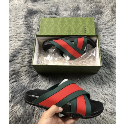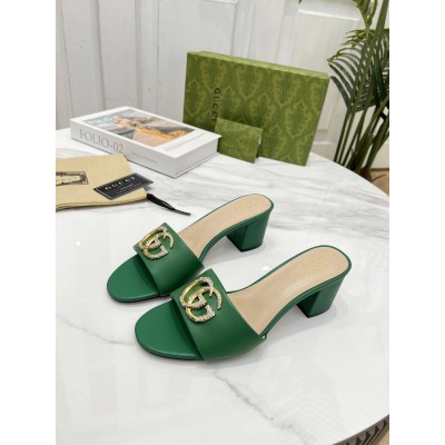 GUCCI Slides Ladies GG Rhinestone Green Sandals