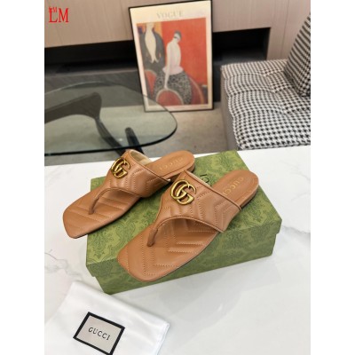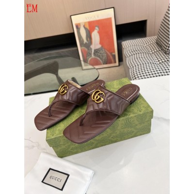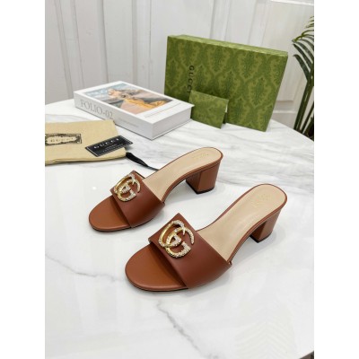 GUCCI Slides Ladies GG Rhinestone Brown Sandals