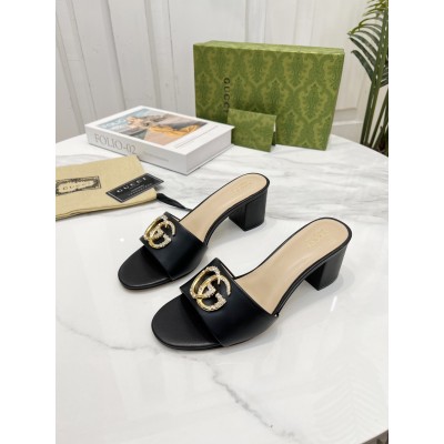 GUCCI Slides Ladies GG Rhinestone Black Sandals
