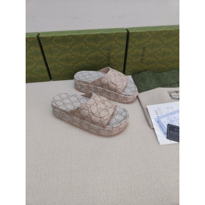 GUCCI Slides Ladies GG Rhinestone Beige Sandals