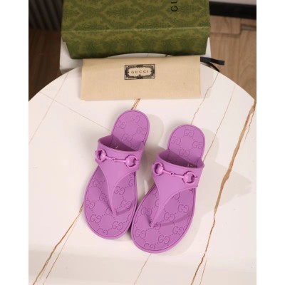 Gucci Slides Purple rubber slippers women's horseneck buckle toe sandals