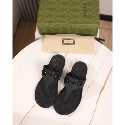Gucci Slides Black rubber slippers women's horseneck buckle toe sandals