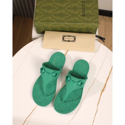 Gucci Slides green rubber slippers women's horseneck buckle toe sandals