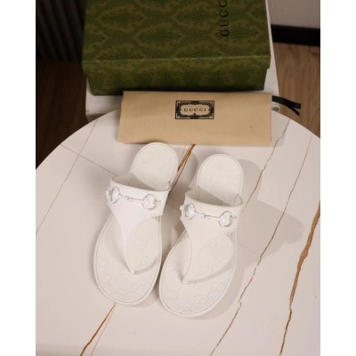 Gucci Slides white rubber slippers women's horseneck buckle toe sandals