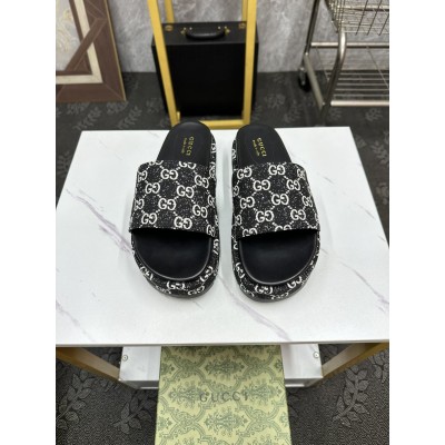 Gucci Slides GG platform classical Black Women Summer Slippers